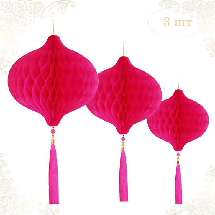 Бумажное украшение Шары-соты с кисточкой НАБОР 3 шт, малиновый