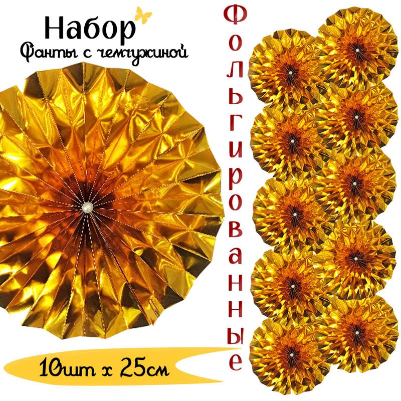 Фанты фольгированные с жемчужиной НАБОР 10шт х 25см, золото