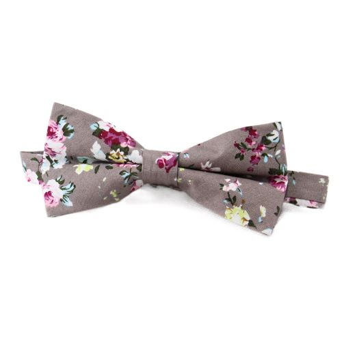 Галстук-бабочка в цветочек 12х6см, серо-бежевый № 3