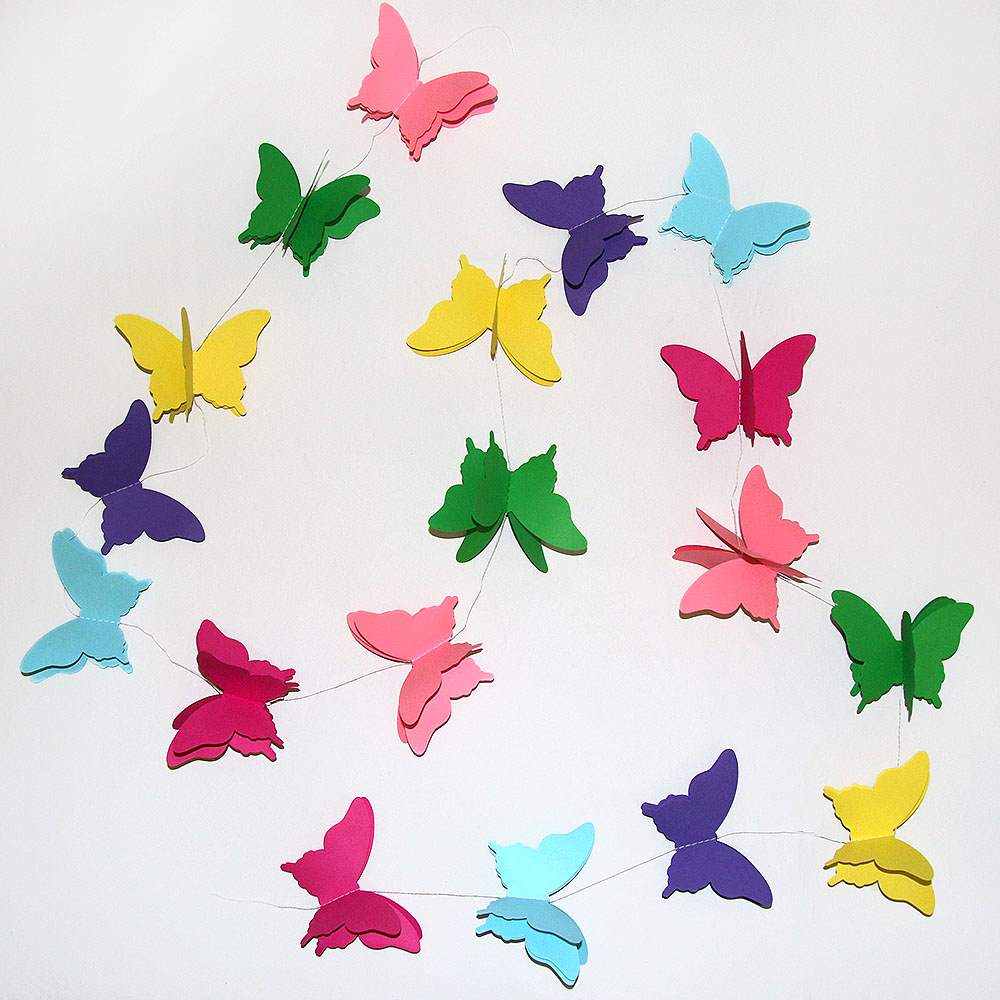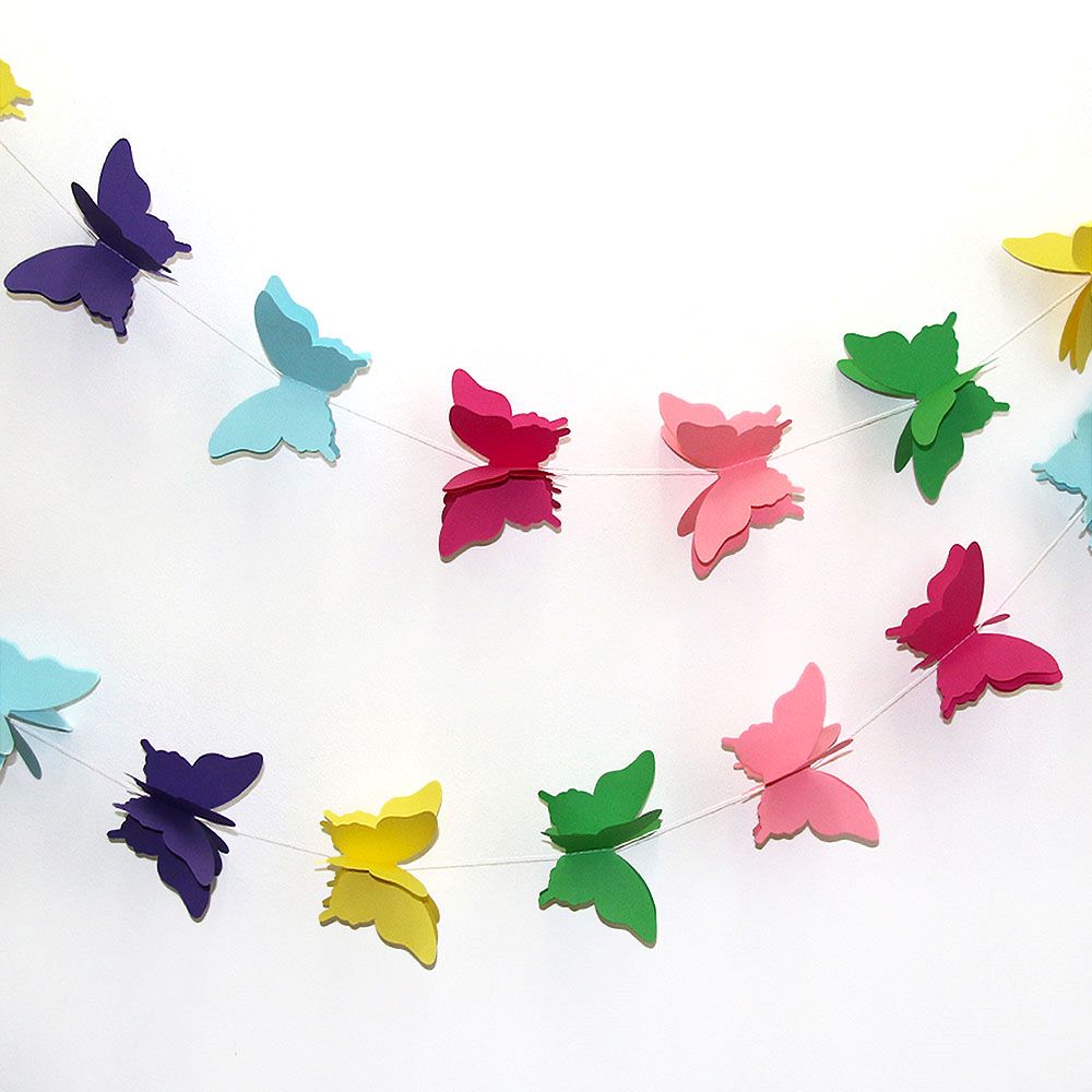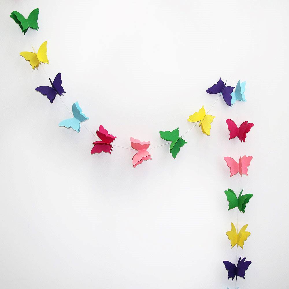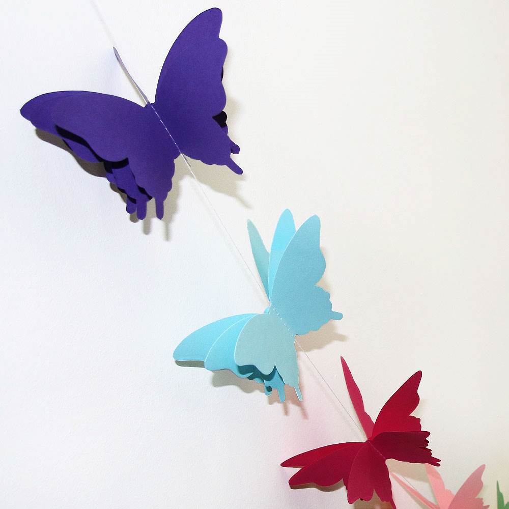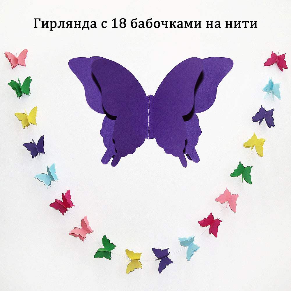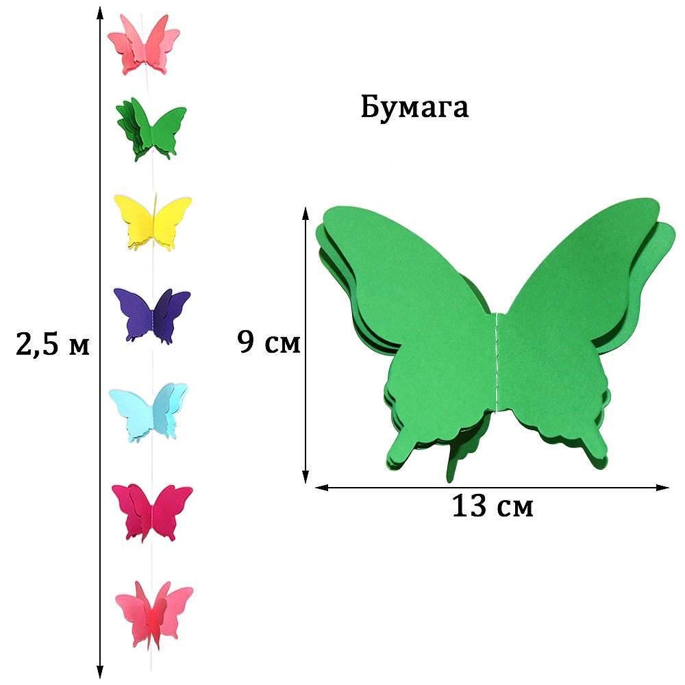 Расправьте крылья и создайте праздничное настроение. Гирлянда идеально подходит для украшения детских комнат, свадеб, окон, стен и фотозон. Объемные бабочки на нитке добавят нежности и легкости интерьеру.