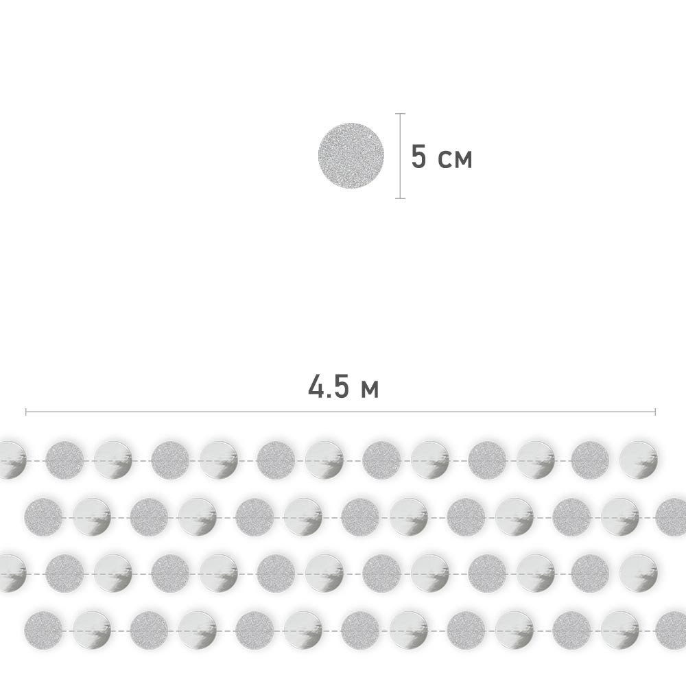 Гирлянда "Кружочки" блеск/металлик 5 см х 4,5 м, Серебро