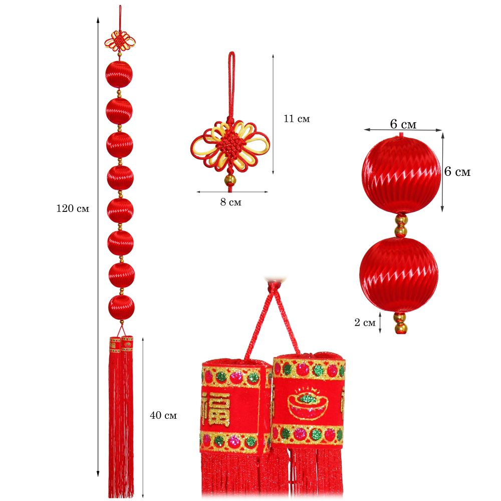 Китайская подвеска шары красные 6х120см