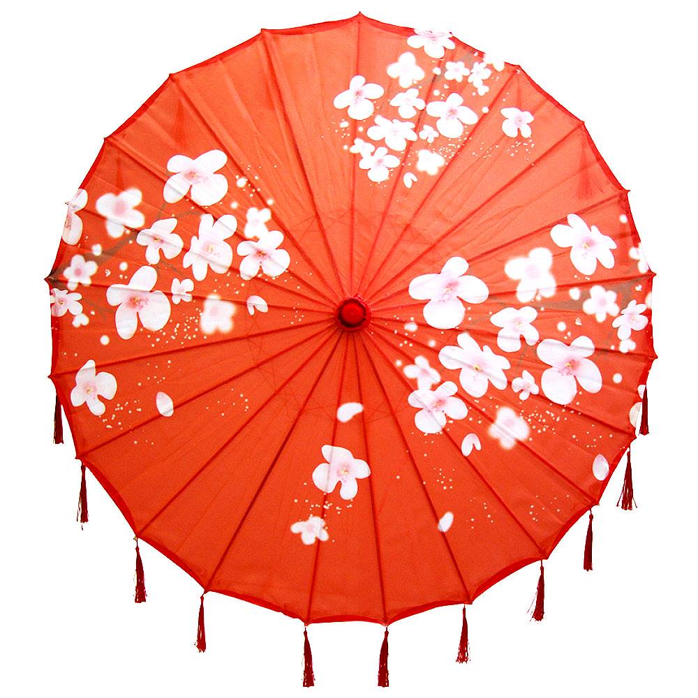 Китайский тканевый зонтик цветочный с кисточками 82х54см, №8