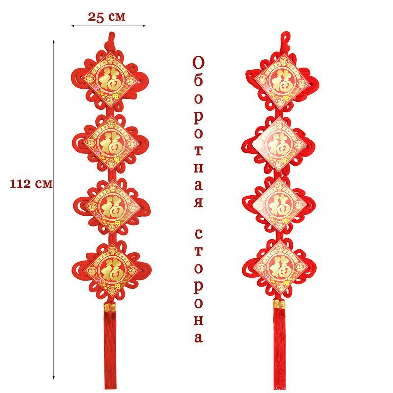 Китайский узел ромб золото НАБОР 2шт (23х112см + 23х112см) кисточка, Фортуна