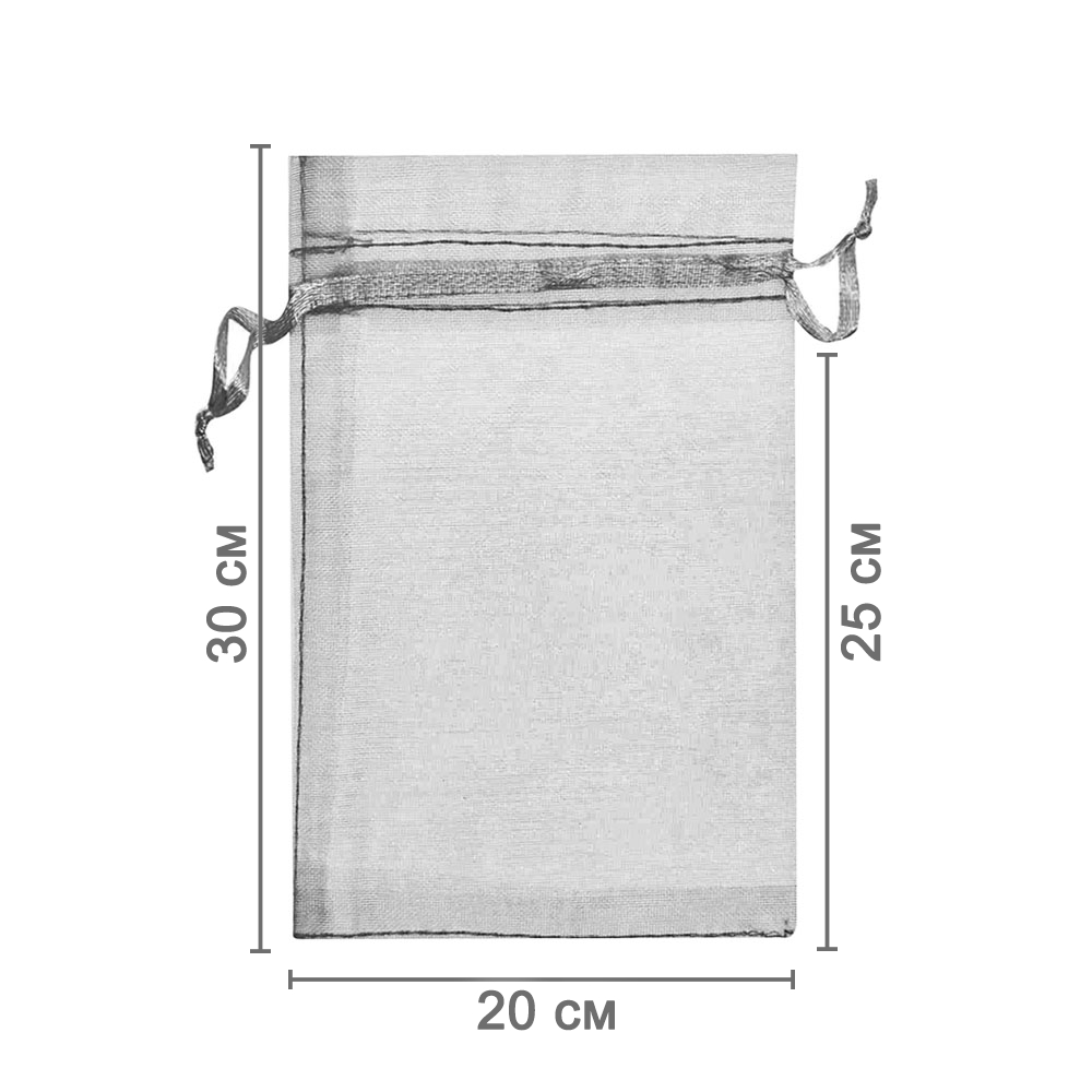 Мешочек из органзы 20 х 30 см — стильный аксессуар для упаковки средних и крупных предметов. Полупрозрачная ткань подчёркивает содержимое и придаёт аккуратный вид.