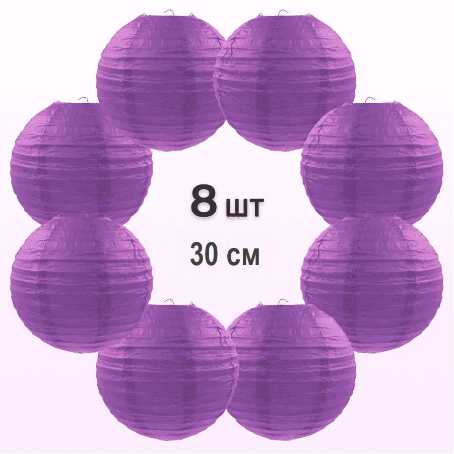 Комплект подвесные фонарики 30 см х 8 шт, сиреневый