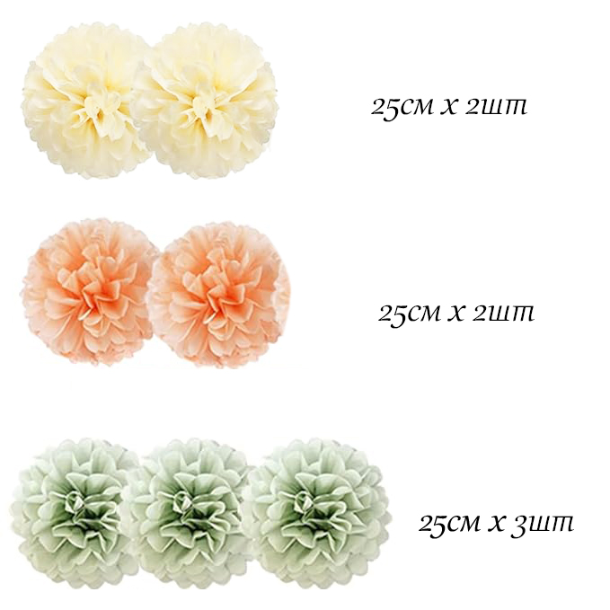 Помпоны из бумаги тишью, 7 шт: