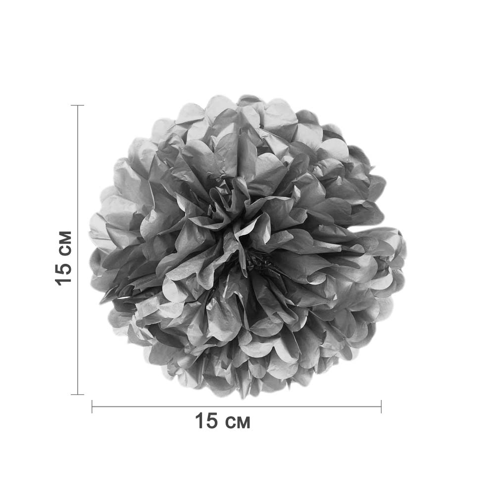 Помпон из бумаги 15 см серебро