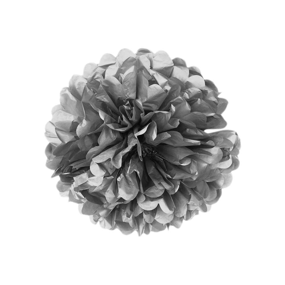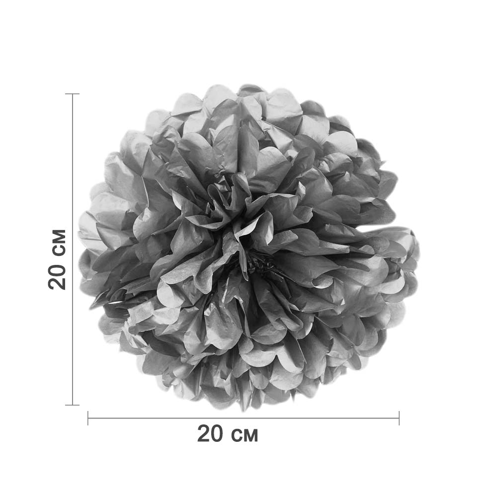 Помпон из бумаги 20 см серебро